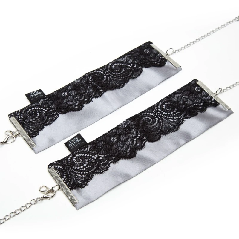 DĂ©couvrez les Menottes Poignets Dentelle et Satin Play Nice de Fifty Shades of Grey, des menottes raffinĂ©es pour vivre lâexpĂ©rience de jeux de bondage chics et Ă©lĂ©gants !