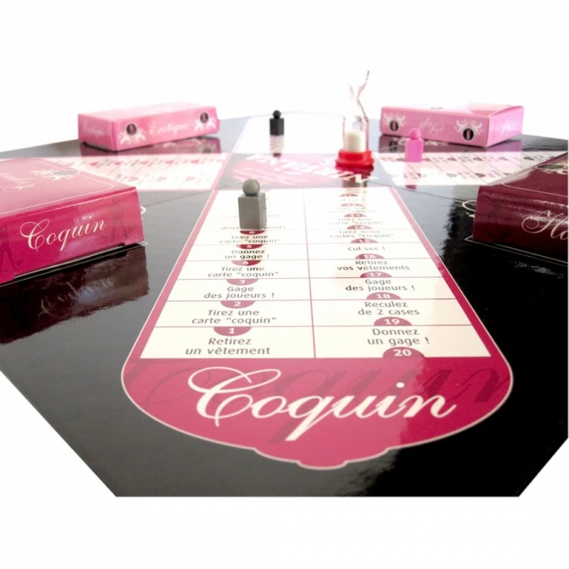 Le jeu de plateau est composé de 4 zones de jeu avec des cartes correspondantes (Soft, Érotique, Coquine et Hot). Les 208 cartes vous permettront de dévoiler vos préférences, vos fantasmes et vos secrets les plus inavouables pour profiter d’un moment décomplexé et excitant ! 80 cases de gages sont présentes pour repousser vos limites et tester de nouvelles expériences ! Pour pimenter encore plus le jeu, vous aurez également la possibilité d’utiliser des accessoires telles que des menottes, masques, sextoys ou bien encore huiles parfumées…
