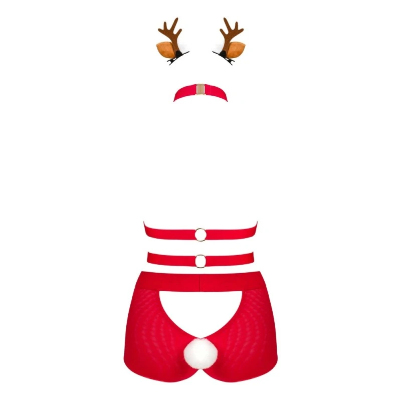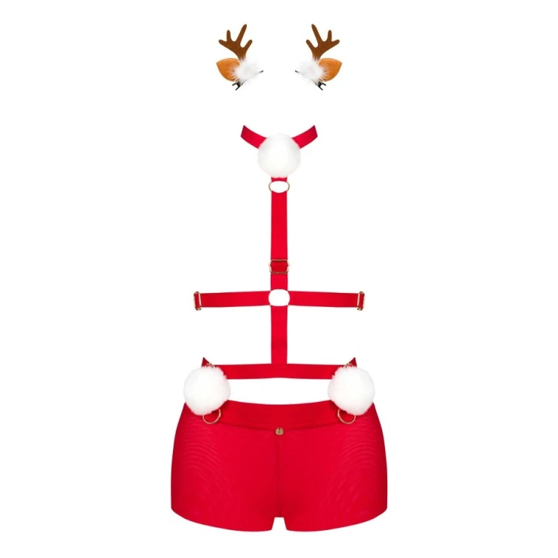 Découvrez l’Ensemble 3 Pièces Harnais Ms Reindy Rouge de la marque Obsessive ! Cet ensemble est composé d’un harnais, d’une culotte taille haute assortie et d’un serre-tête. Une fois revêtu, ce costume vous donnera une allure audacieuse et incroyablement sexy à la veille des fêtes de Noël !