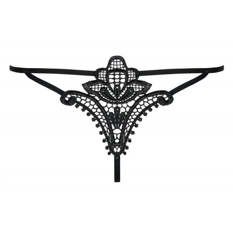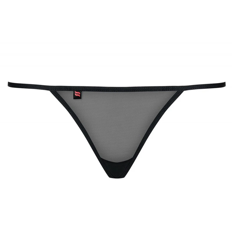 Le String Luiza Noir de la marque Obsessive est un string en voile noir transparent, broderie motif floral au dos, l’accessoire sexy de vos tenues !