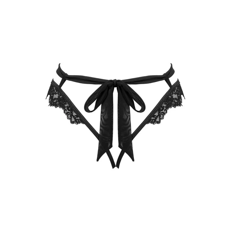 Découvrez le String Ouvert Setilla Maille & Dentelle Noire de la marque Obsessive ! Ce dessous sexy vous donnera une allure romantique à souhait avec sa dentelle fine et son adorable nœud papillon sur la naissance de votre fessier !