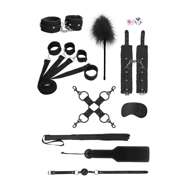 Ce kit contient tout ce dont vous avez besoin pour assouvir votre soif de domination : 4 sangles avec menottes de poignets et chevilles, 1 attache hogtie à 4 mousquetons, 2 paires de menottes en cuir pour poignets et pour chevilles afin de bien attacher votre partenaire.