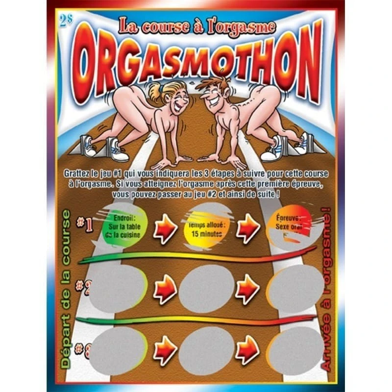 Faites une surprise à votre partenaire en lui offrant le Jeu de Cartes à Gratter Orgasmothon La Course à l’Orgasme de Ozzé, un cadeau drôle et original qui augmentera votre excitation !
